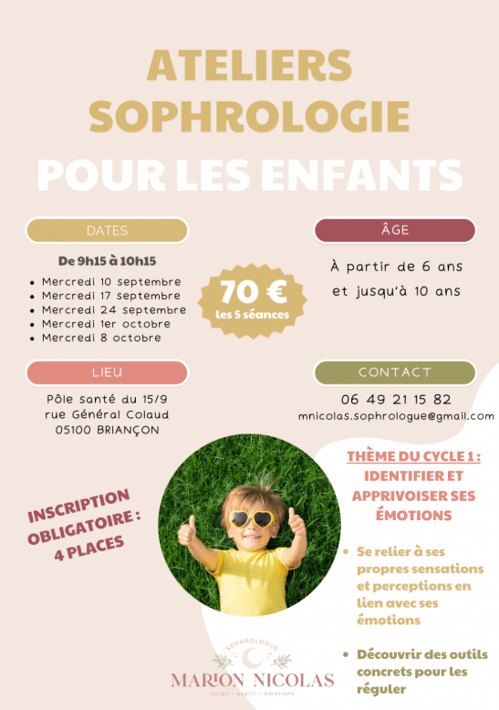 Les ateliers de sophrologie sont une belle opportunité pour découvrir ou approfondir cette pratique dans un cadre collectif, bienveillant et guidé.Ils permettent de prendre un temps pour soi, de se recentrer et d’acquérir des outils simples pour mieux gérer le stress,...